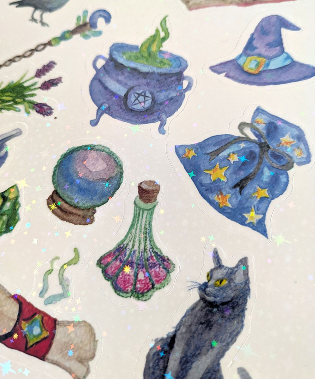 Stickers holographiques – Magie & Potions | Illustrations artisanales peintes à la main
