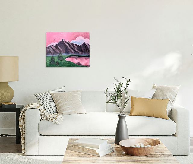 Un paysage lacustre et montagnard aux teintes roses. Les reflets du lac appellent à une pause contemplative pour ralentir et se ressourcer.